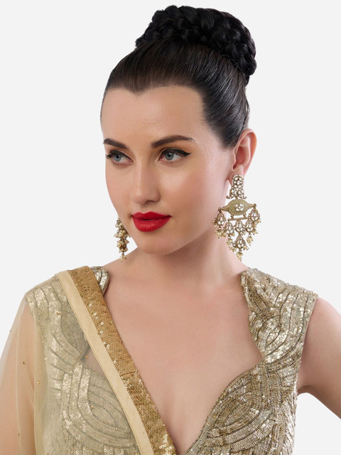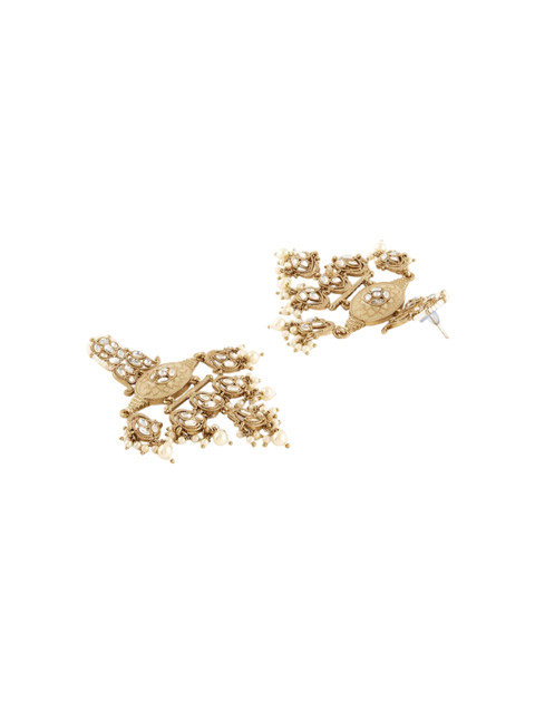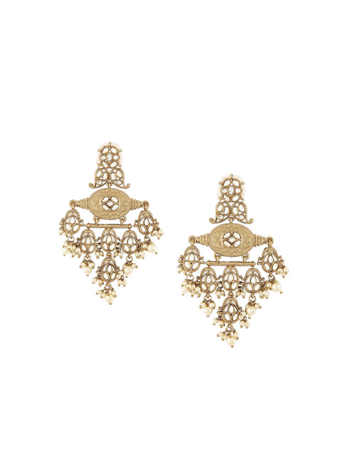 Gold-toned drop earrings, gold-plated, has kundan