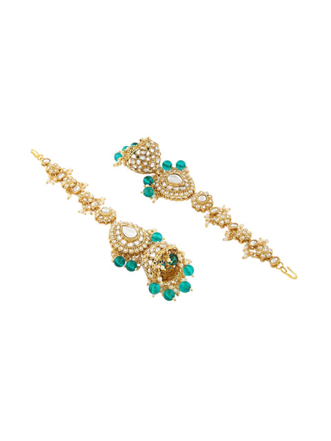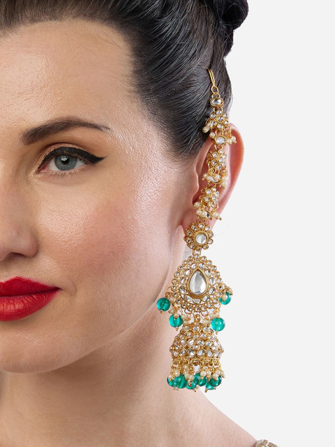 2 reviews for Zaveri Pearls Gold-Plated Kundan Studded & Beaded Dome Shaped Jhumkas With Ear Chains