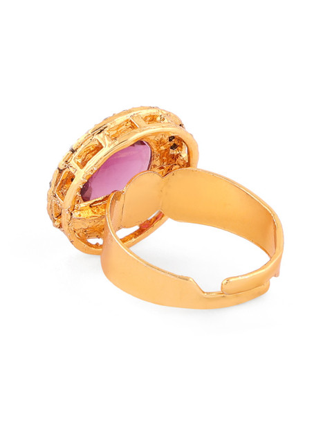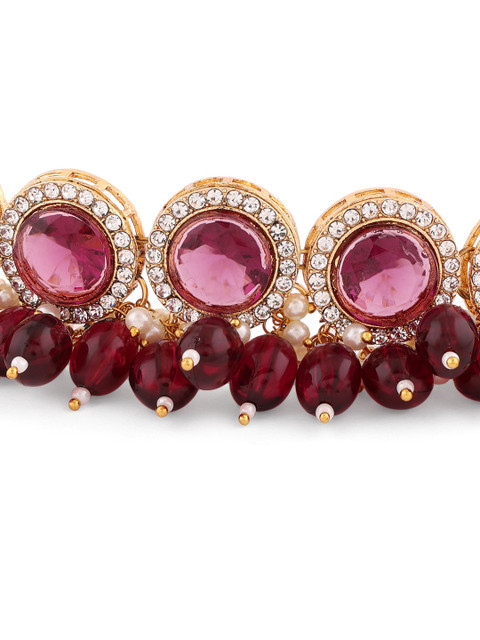 Gold-plated necklace has maroon and white stone-studded and pearl-beaded details