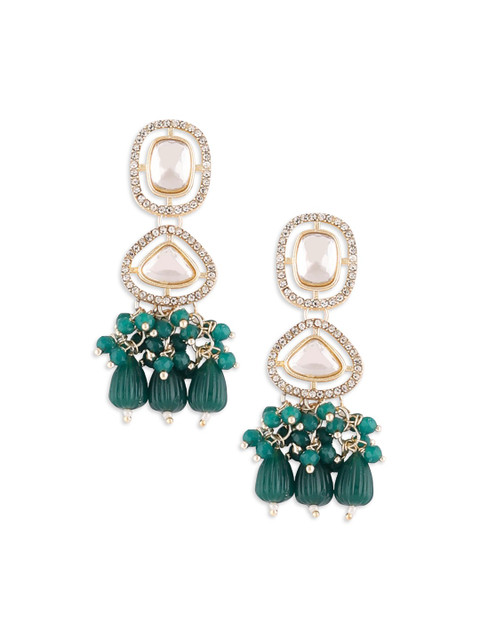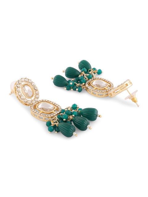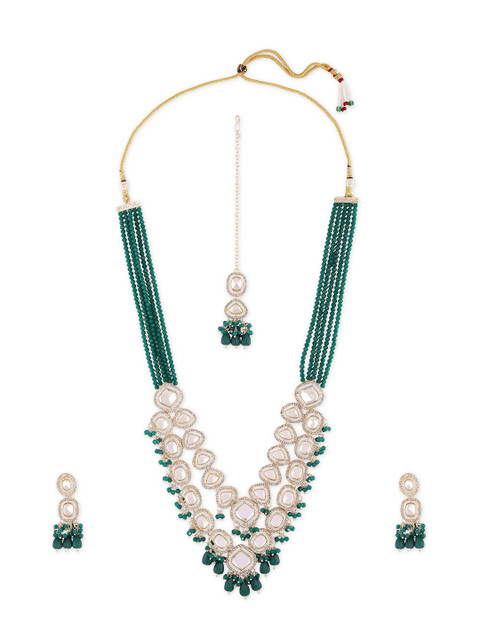Gold-plated necklace, has green and white stone-studded and beaded details, secured with drawstring closure