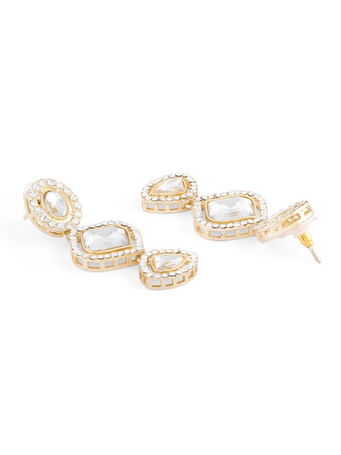 A pair of matching drop earrings, each secured with a post-and-back closure
