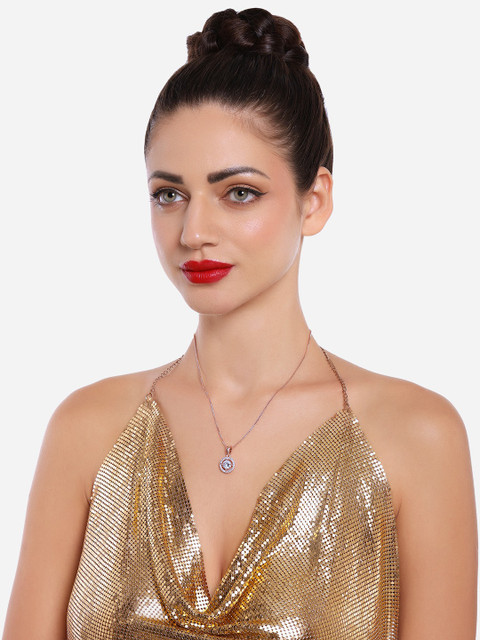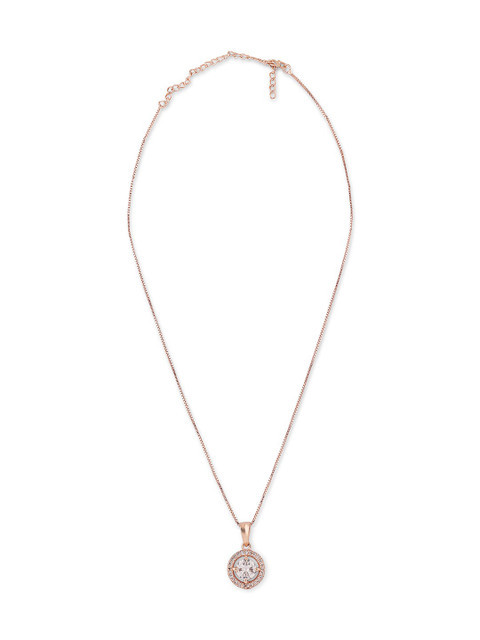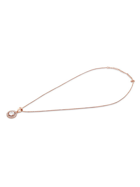 Rose gold-plated pendant has CZ-studded Secured with lobster closure