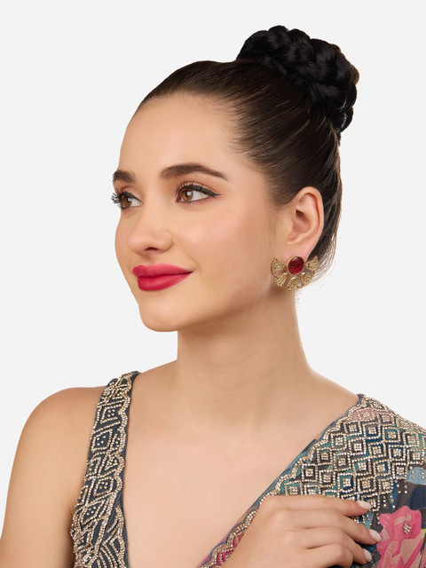 Design: Gold-toned & red contemporary studs,gold-plated has artificial stones studded & beaded details