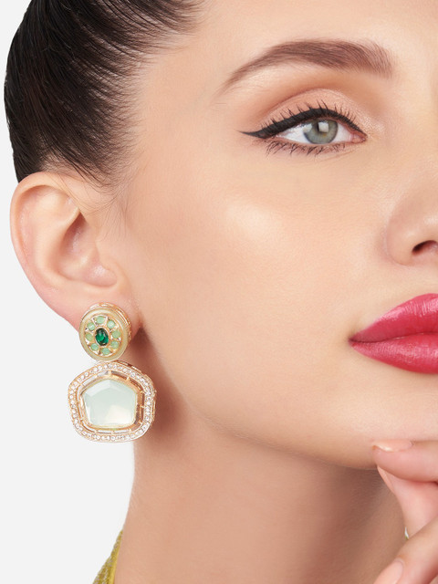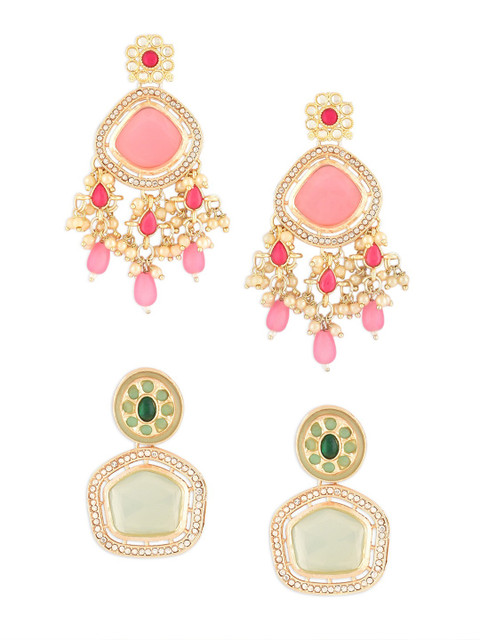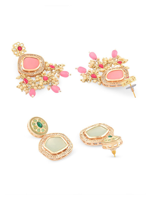 Gold-toned, pink & green contemporary studs, gold-plated, has artificial stones