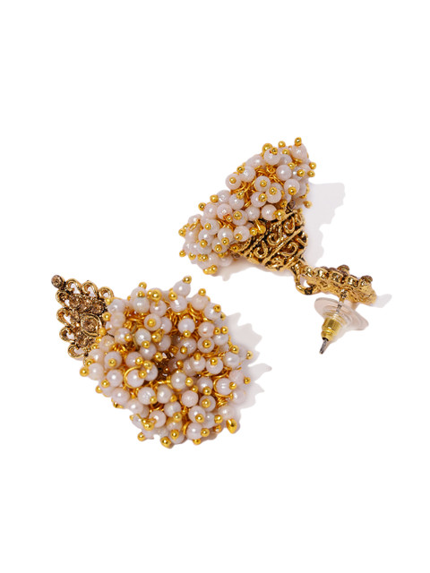 One pair of jhumka earrings, with pearl cluster embellishment, secured with post-and-back closure