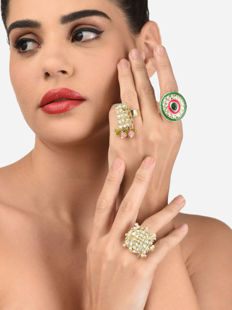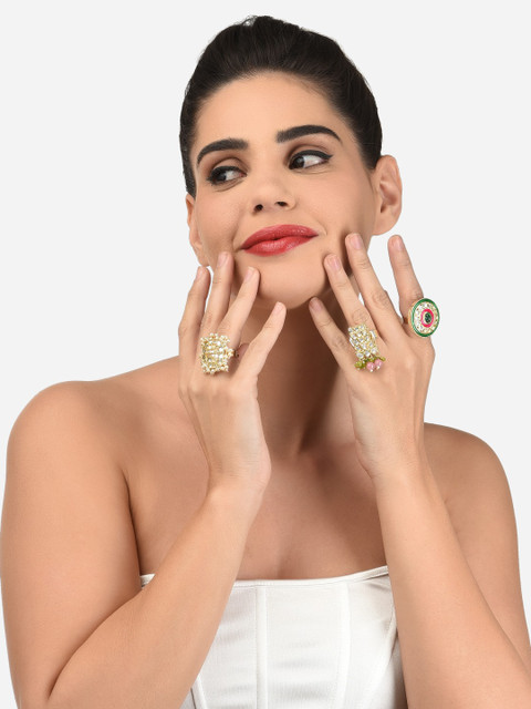 Look bewitching with this one-of-a-kind statement ring from Zaveri Pearls rings. It can be worn with your traditional attire. Perfect for religious events.
