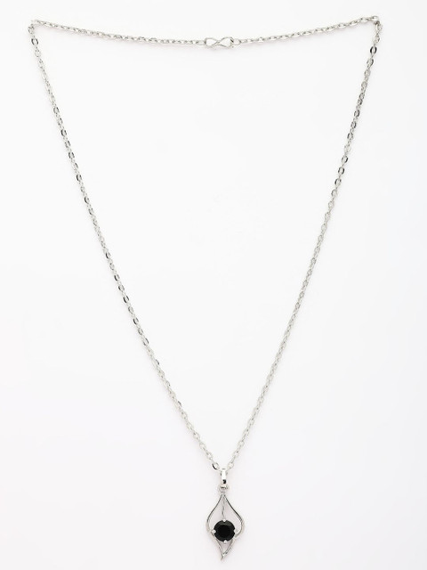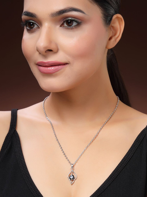 Enhance your elegance with this Rhodium-Plated Silver-Toned American Diamond Pendant with Chain. The sparkling stones and sleek finish add a refined charm, making it perfect for both casual and festive occasions. Pair it with western outfits for a sophisticated look or with ethnic attire for a touch of modern grace.