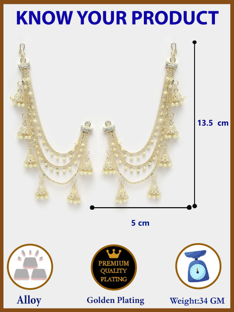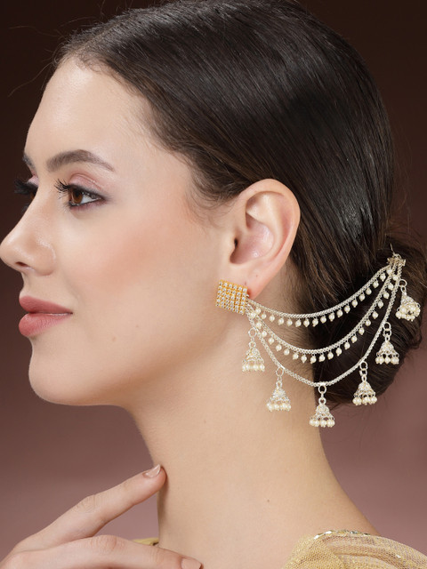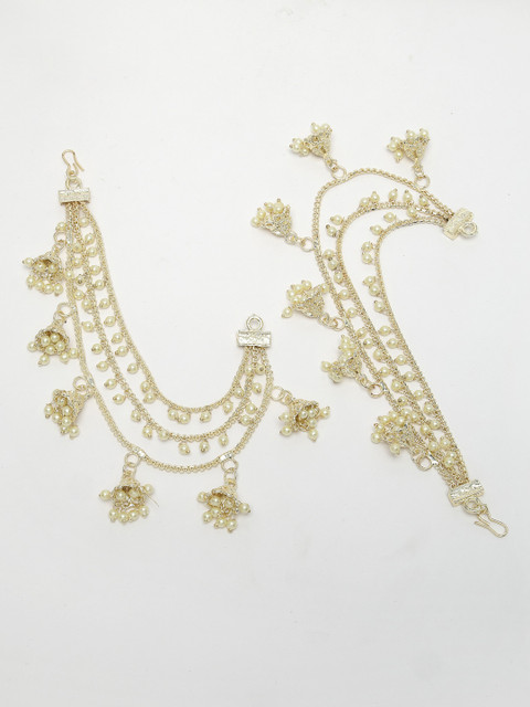 Gold-toned multi layered Ear chain has Jhumki & artificial Pearl & beads Ear chain