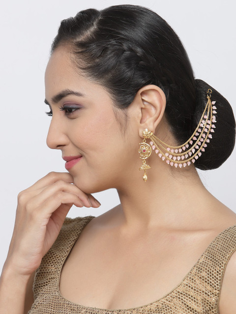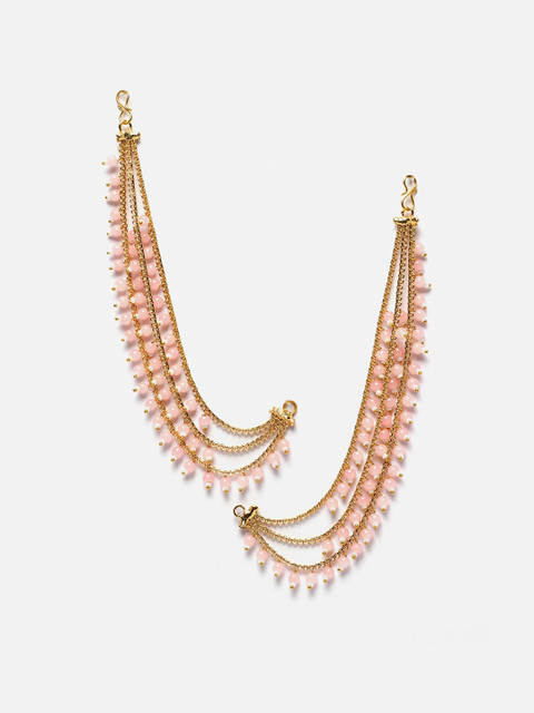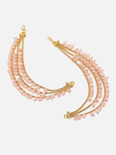 Gold-toned multi layered Ear chain Has artificial Pink beads