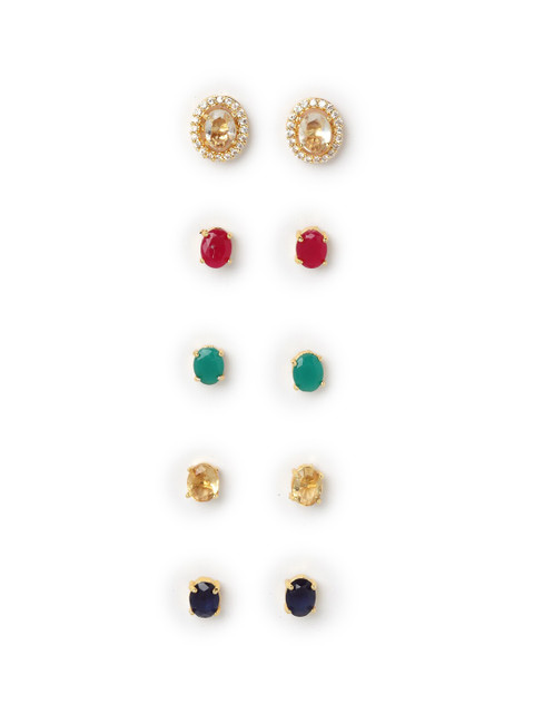 Set of 5 Gold-Toned Floral Oval Shaped Swarovski With Interchangeable CZ Stud Fashion Jewellery.