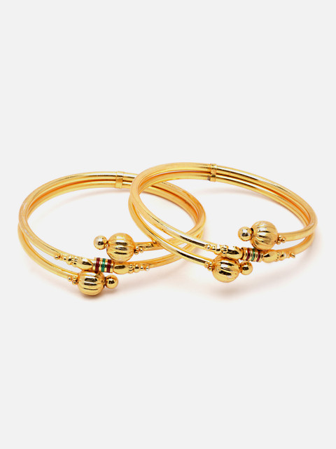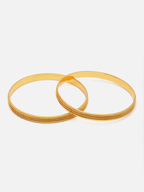 Set of 2 Gold-Plated bangles, each has a intricate design details, secured with slip-on closure