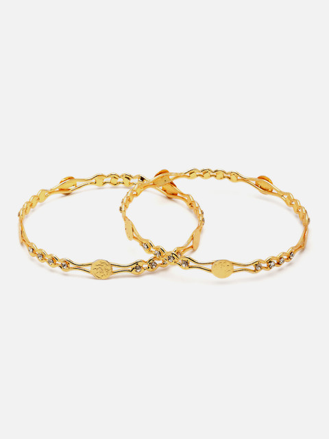 Set of 2 gold-Plated bangles has a zig-zag design with white stone studded and coin details, each secured with slip-on closure