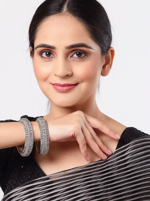 3 reviews for ZENEME Set Of 2Oxidized Traditional Textured Bangle