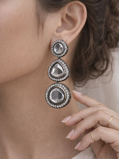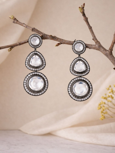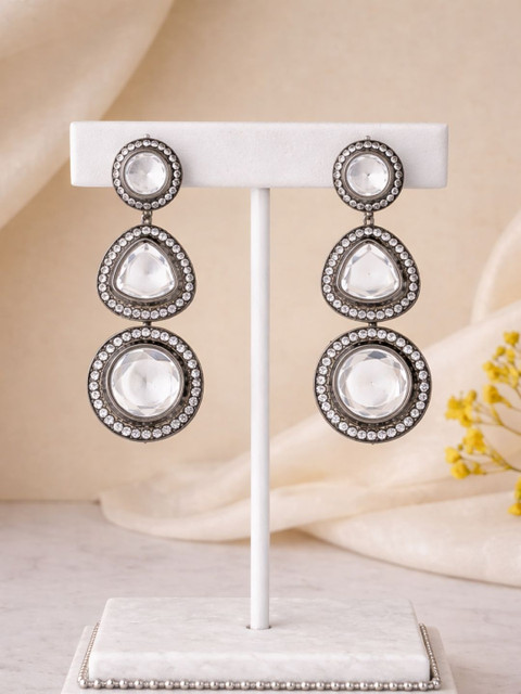 Silver-toned and silver-toned geometric drop earrings, silver-plated, has artificial beads