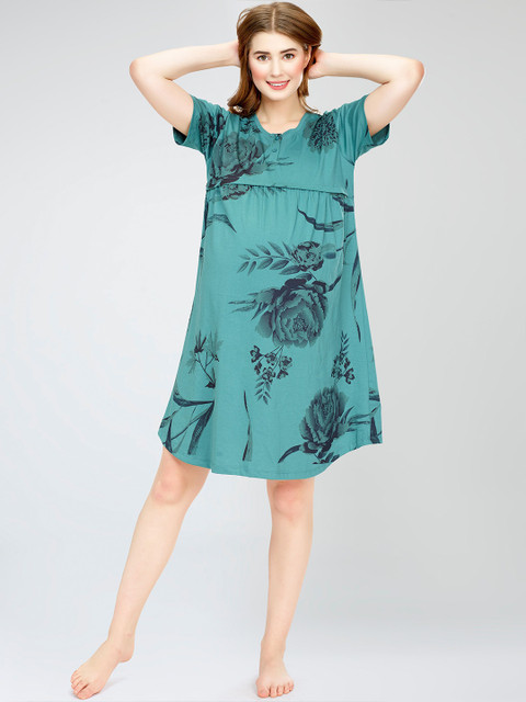 Zeyo Floral Printed Pure Cotton Maternity T-shirt Nightdress