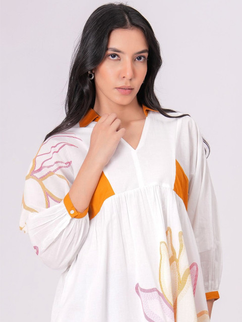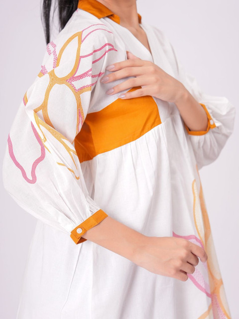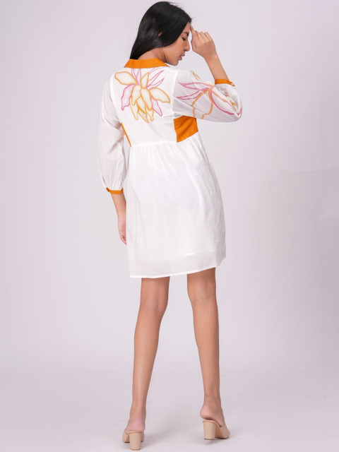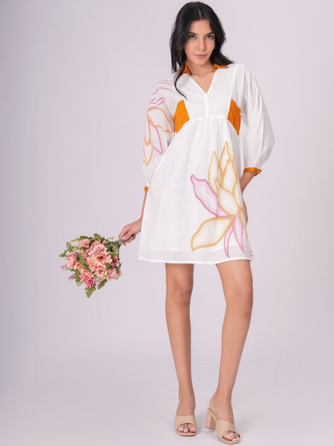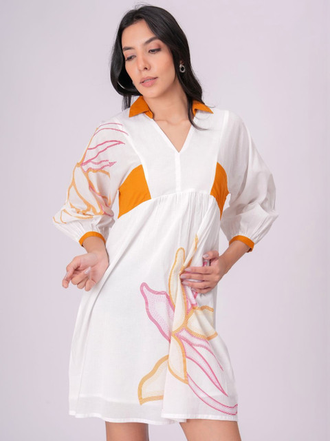 - White and white floral print a-line dress