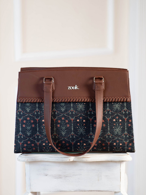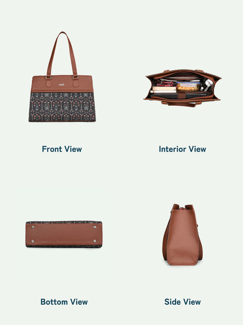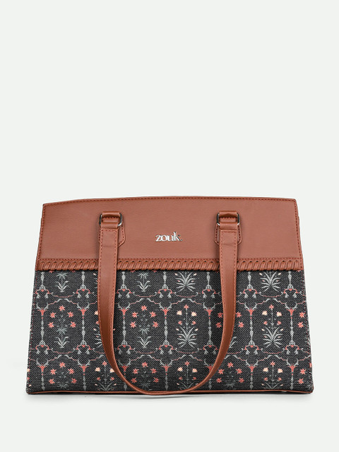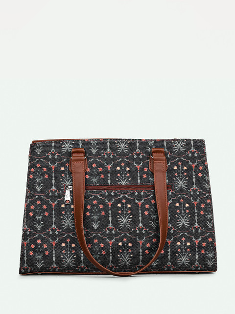 Black floral printed shoulder bag 1 main compartment, has a zip closure, 1 external pocket, 3 inner pockets