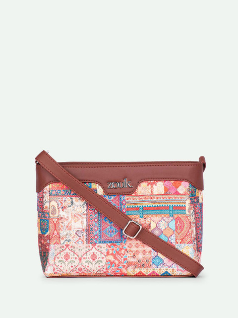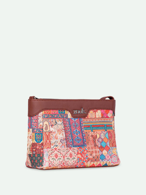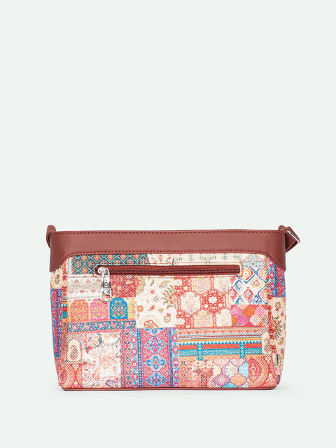 Blue, red and brown ethnic motifs printed sling bag