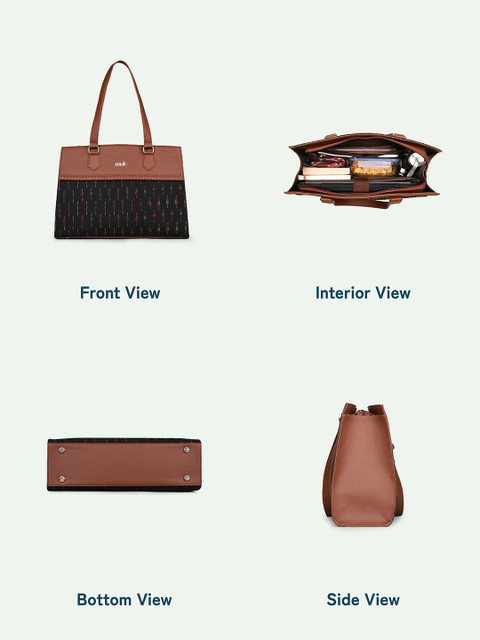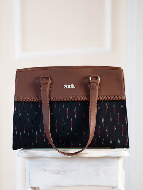 Black colourblocked printed shoulder bag 1 main compartment, has a zip closure, 1 external pocket, 3 inner pockets
