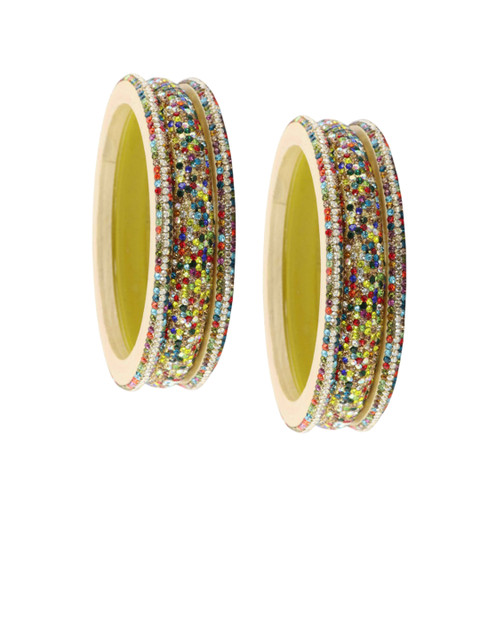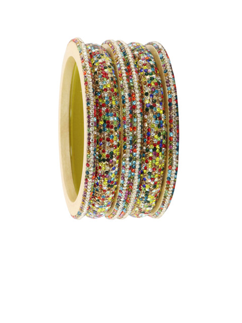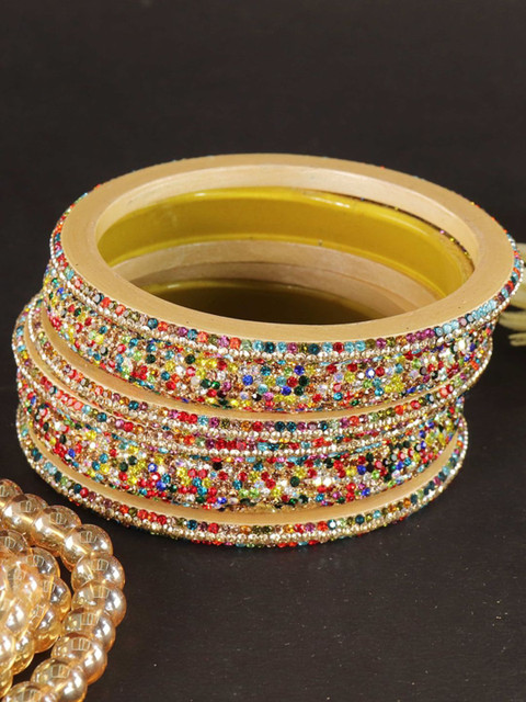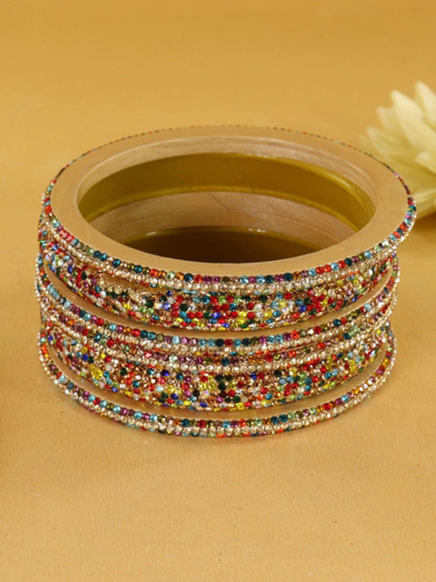 Set of 6 bangles, each has red and blue Lac Kada Bangles-studded details, secured with slip-on closure