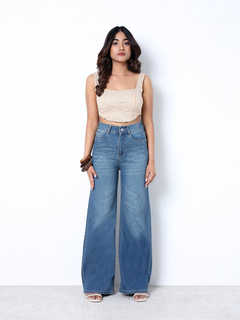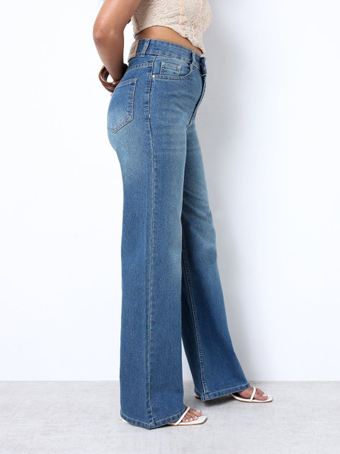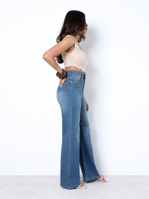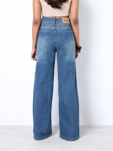 ZUYA Women Light Blue Strechable Super Wide Leg Denim Jeans