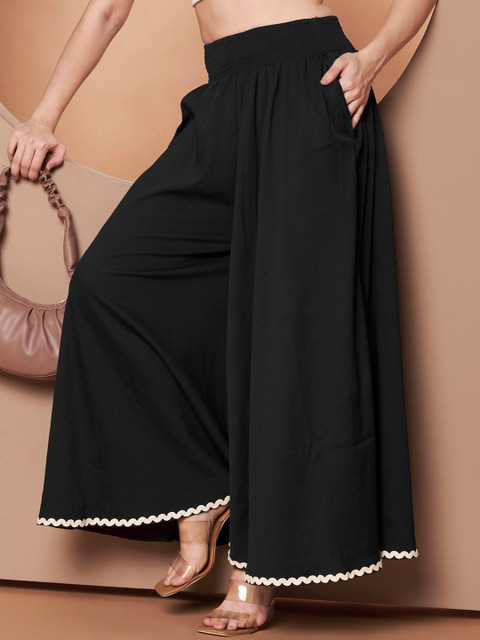 - Black woven palazzos