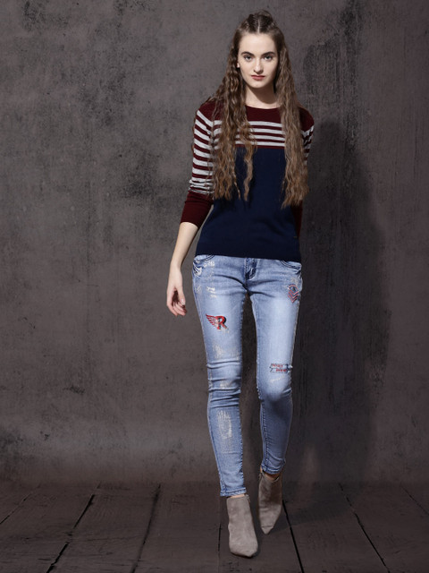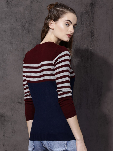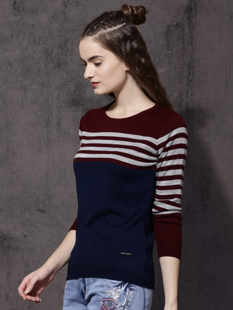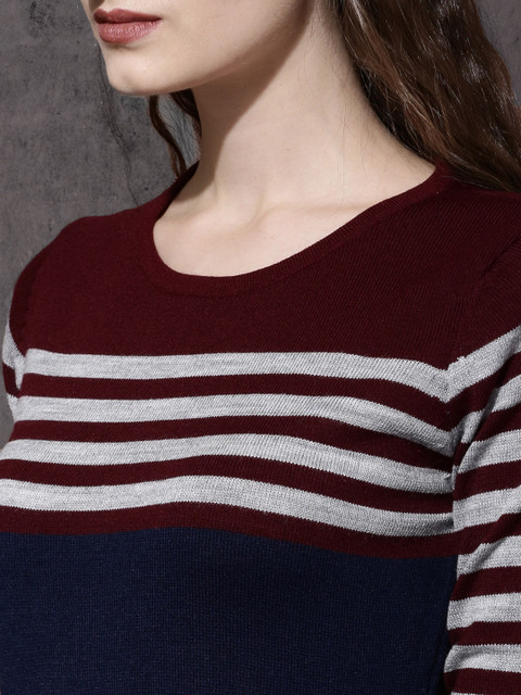 3 reviews for Roadster Women Maroon & Navy Striped Sweater