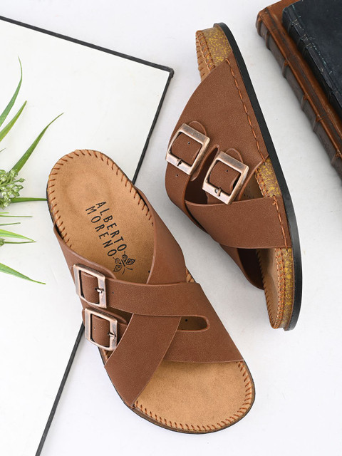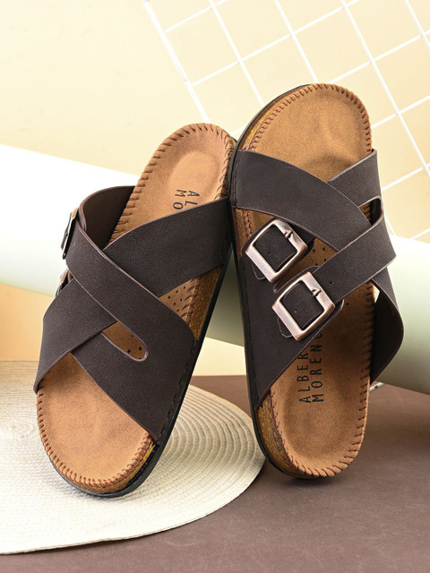 AfroJack Men Two Strap Leather Comfort Sandals With Buckles