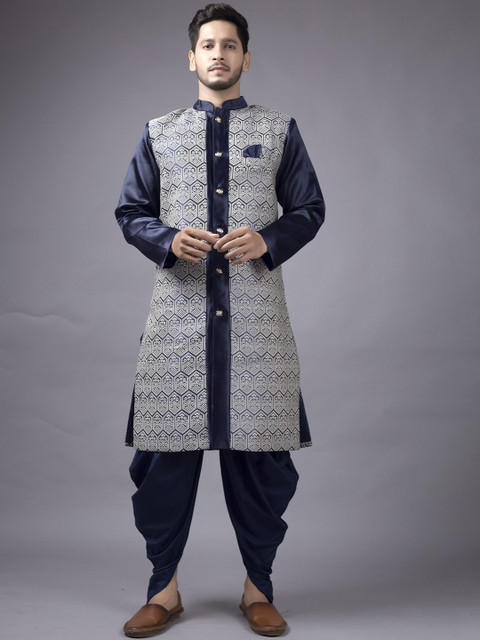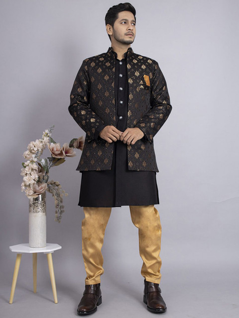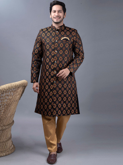 amzira Brocade Mandarin Collar Pure Cotton Sherwani & Kurta With Pyjamas