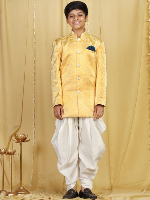 Aj DEZInES Boys Yellow Woven-Design Sherwani Set