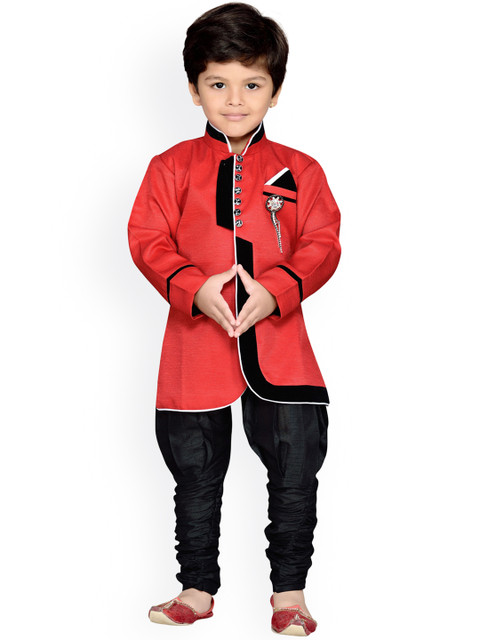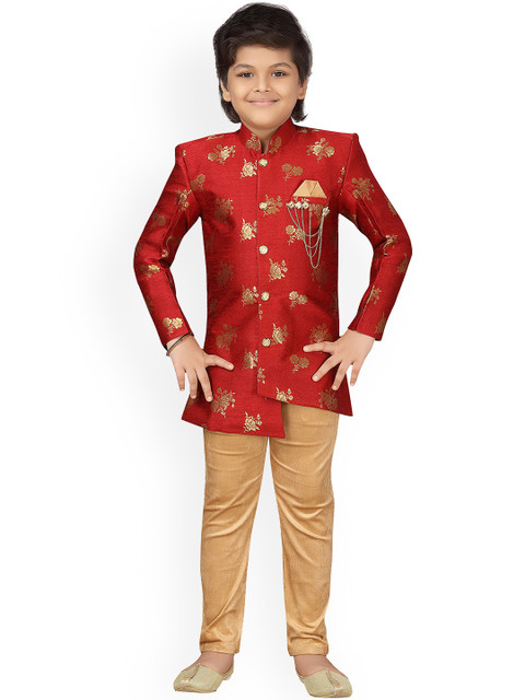 Aj DEZInES Boys Red & Gold-Coloured Sherwani Set