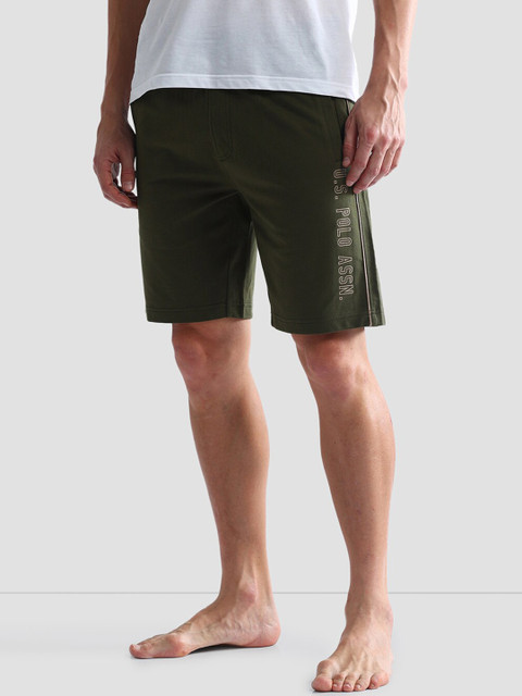 U.S. Polo Assn. Men Brand Logo Printed Mid-Rise Lounge Shorts