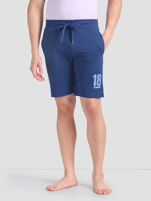 UnderJeans by Spykar Men Printed Mid-Rise Regular Fit Lounge Shorts
