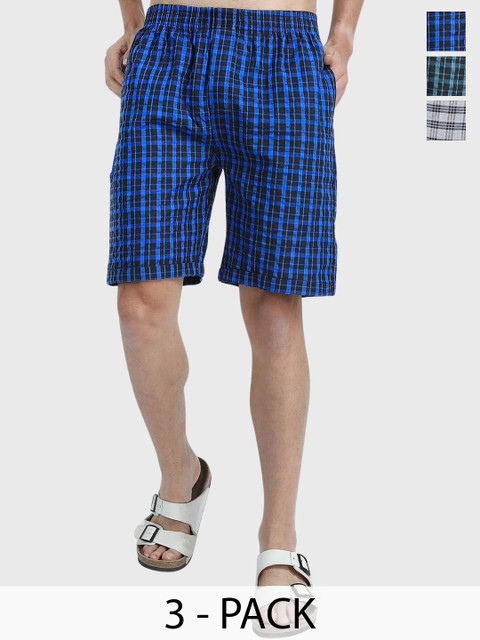 URBANICE Men Pack Of 3 Checked Training or Gym Shorts
