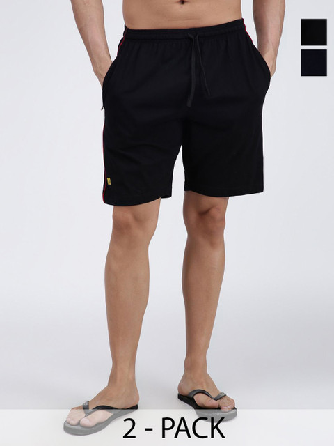 AMSWAN Men Colourblocked Pure Cotton Low-Rise Running Sports Shorts