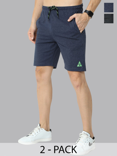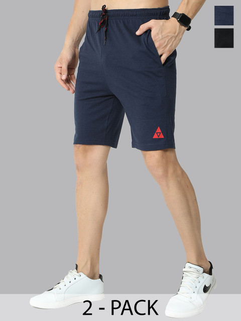 ARDEUR Men Pack of 2 Black & Navy Blue Sports Shorts