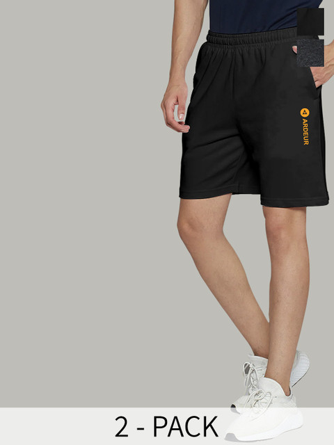 ARDEUR Men Pack Of 2 Black & Grey Solid Regular Shorts