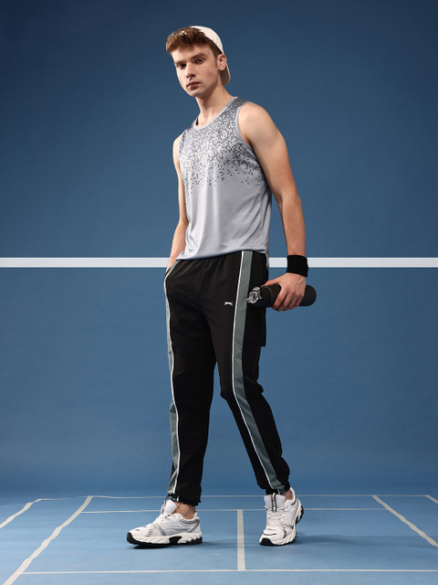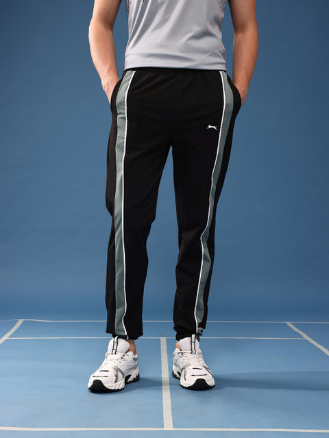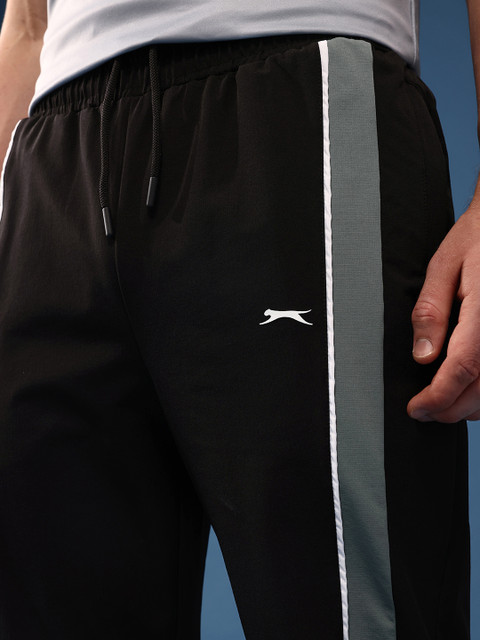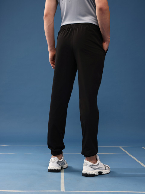 Black side stripes mid-rise joggers track pant, has an elasticated waistband with drawstring closure, 2 pockets & side piping detail