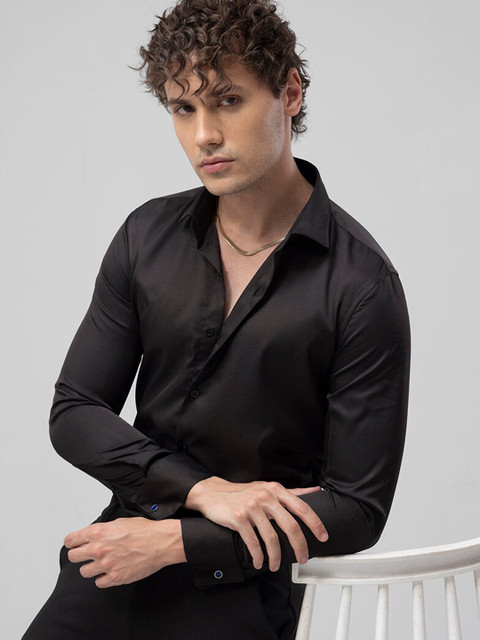 3 reviews for Snitch Black Classic Slim Fit Cotton Casual Shirt