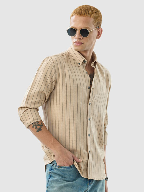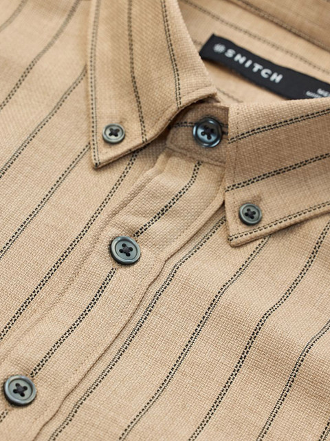 Beige & Black opaque casual shirt for men