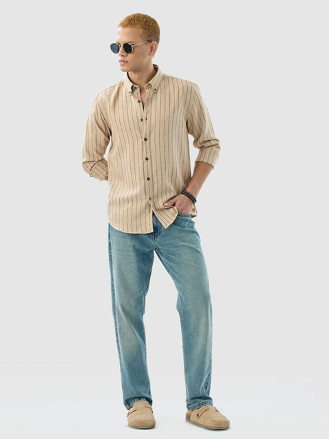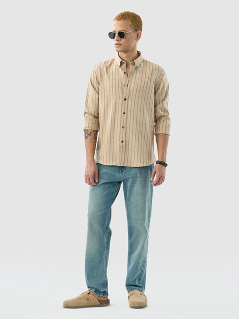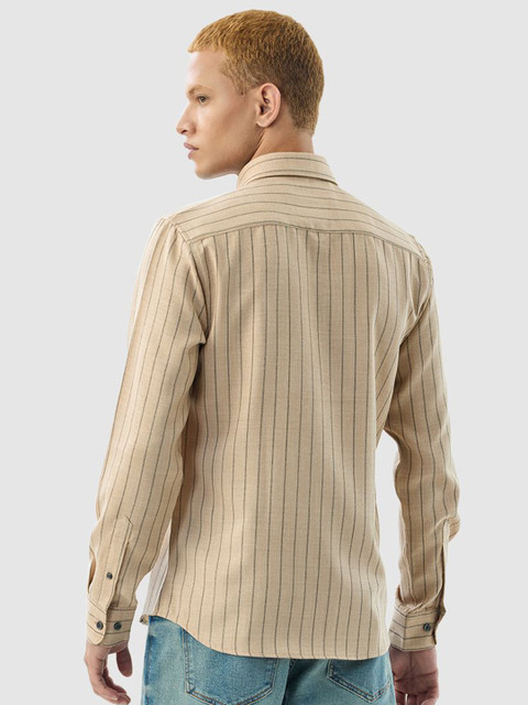 pair this striped shirt with dark chinos and loafers for a polished yet relaxed look. |