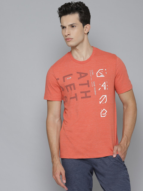 Alcis Men Rust Orange & White Printed Round Neck T-shirt