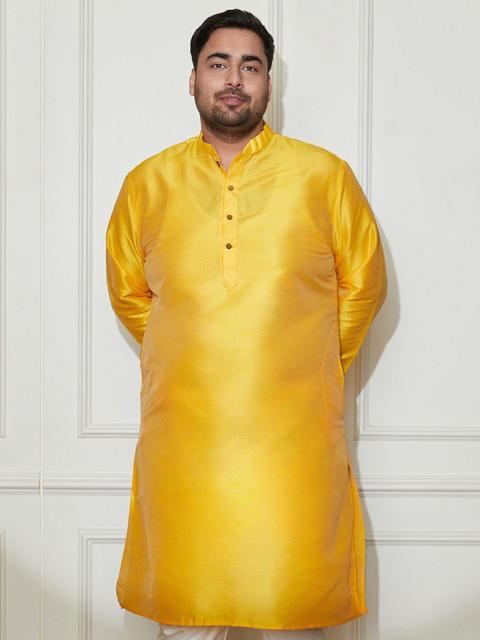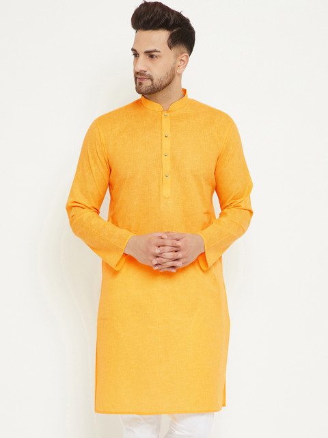 VASTRAMAY Men Yellow Solid Straight Kurta