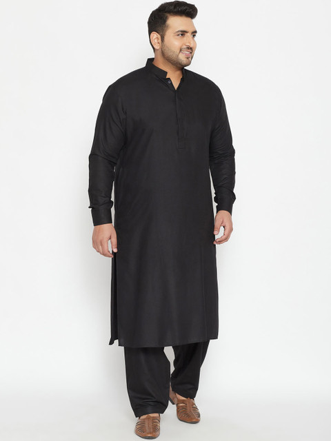 VASTRAMAY Plus Size Men Black Solid Kurta with Salwar