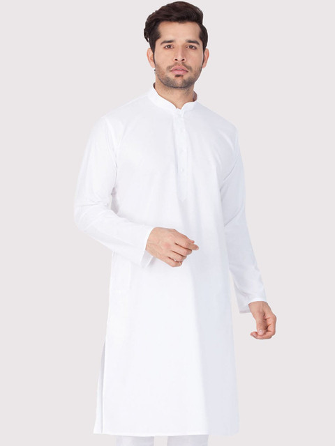 VASTRAMAY Men White Solid Straight Cotton Kurta