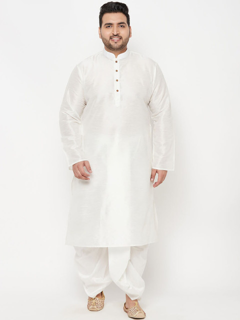 VASTRAMAY Men White Solid Silk Blend Kurta with Dhoti Pants