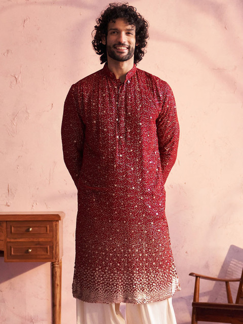 VASTRAMAY Sequinned Embellished Straight Kurta