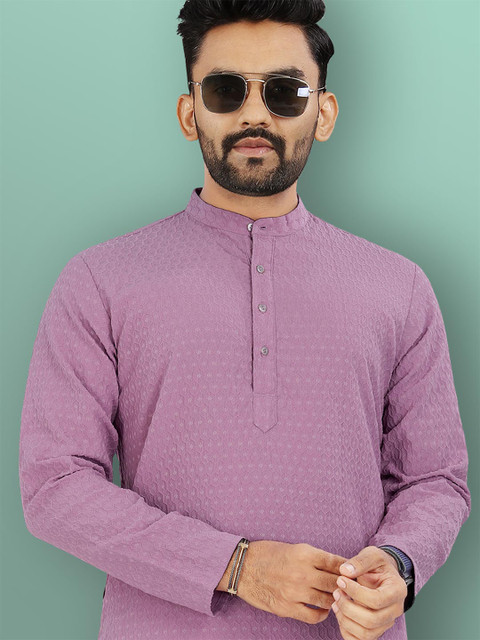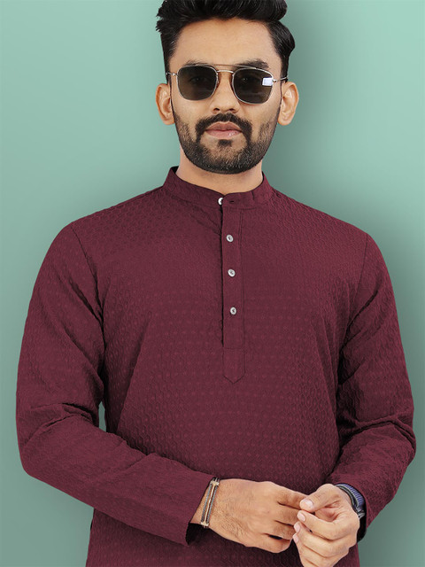 VeBNoR Men Thread Work Dobby Kurta