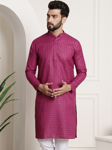 SOJANYA Men Magenta Dobby Checked Straight Kurta