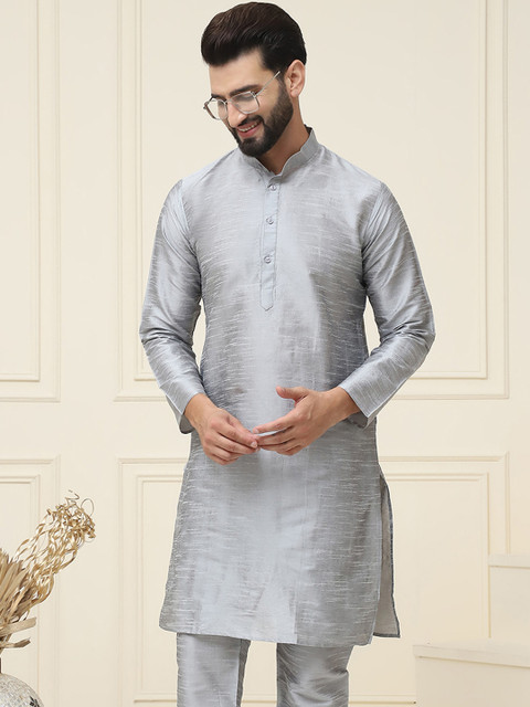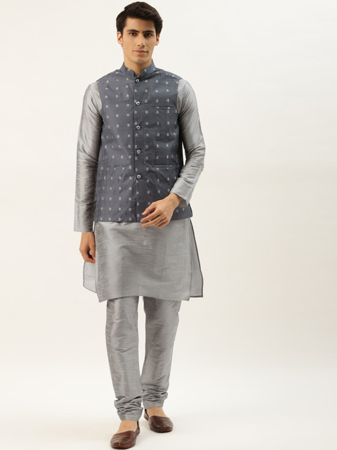 SOJANYA Men Grey Kurta with Churidar And Nehru Jacket